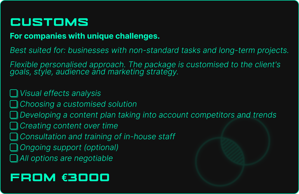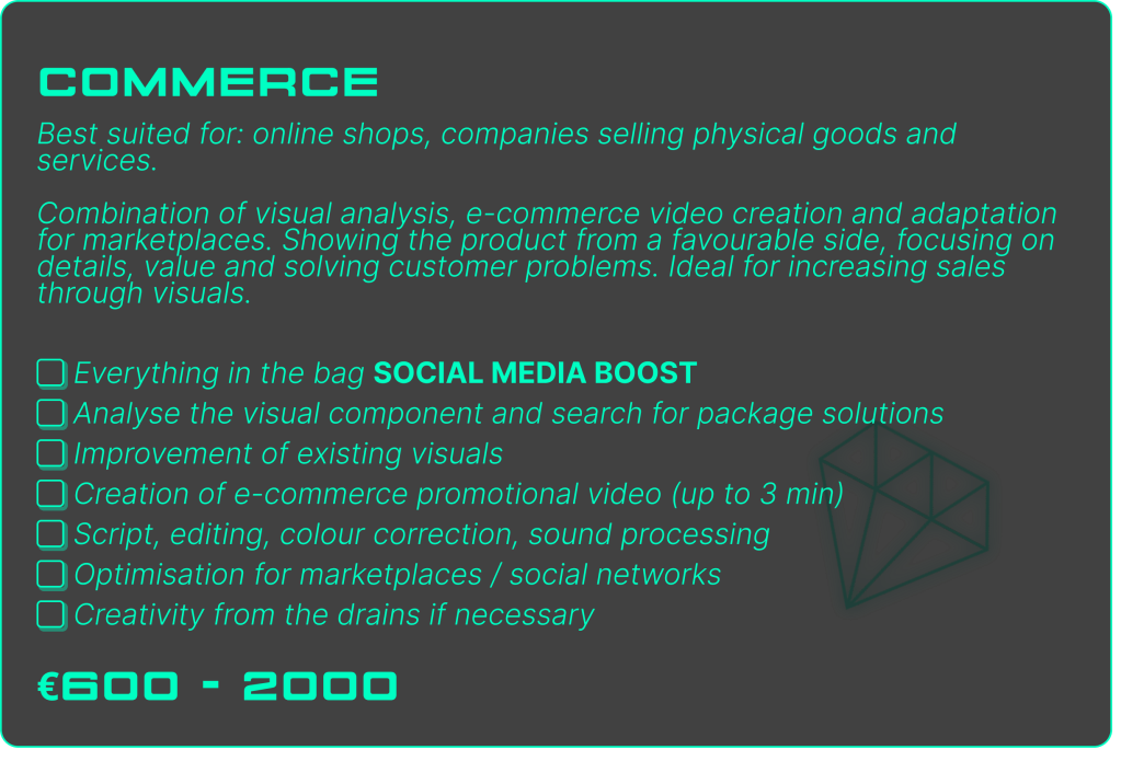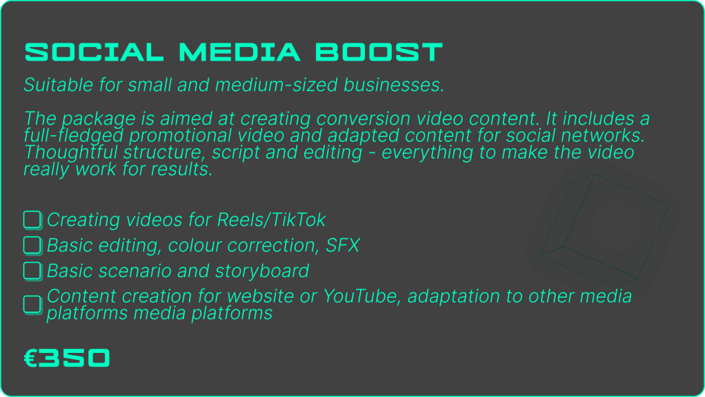 Short, dynamic videos adapted for TikTok and Instagram Reels. Emphasis on trends, speed of editing and spectacular presentation.
