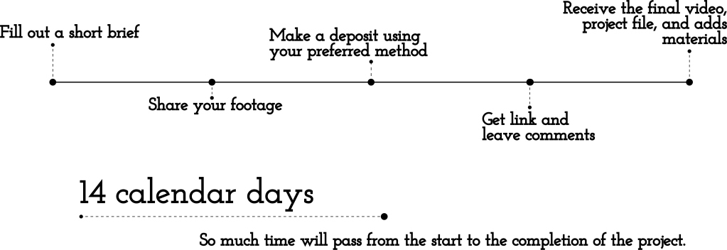 Today, we are developing not only as a regular outsourcing editing service, but also as a unique experience for videographers, with the help of which you can simplify editing to just three clicks of a button on your part, and we will take care of the rest.